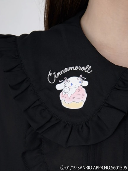 「シナモロール」のプリントが襟元にあしらわれて、キュートな雰囲気に包まれる一着です。