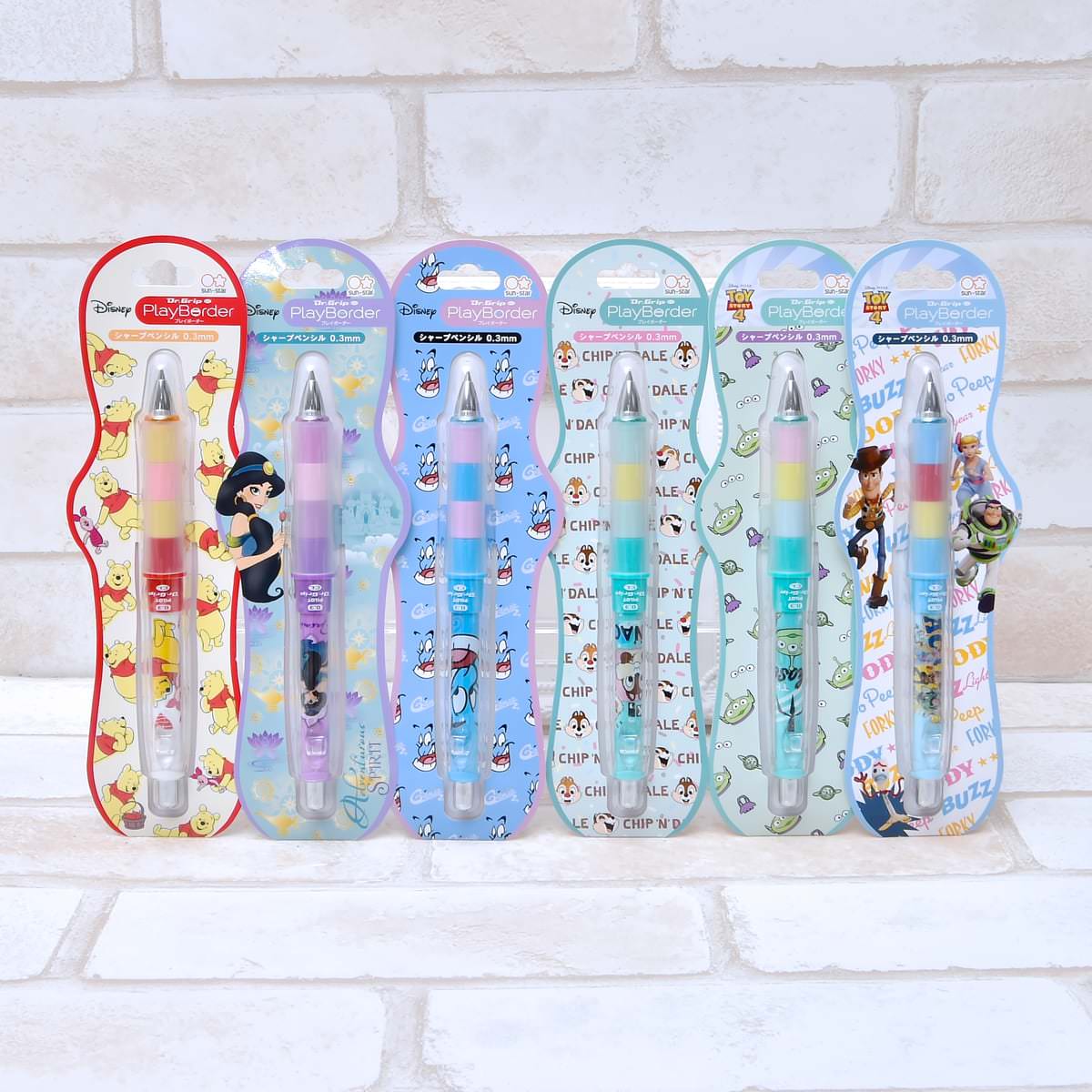 今回は、そんな「サンスター文具」と「パイロット」がコラボした、カラフルな3色のグリップがキュートなディズニーデザインのシャープペンシル「Dr.Gripプレイボーダー」を紹介します☆
