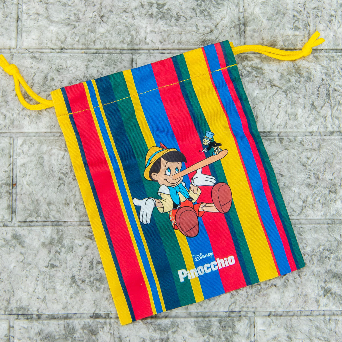 どこかレトロな雰囲気がオシャレな『ピノキオ』の巾着。