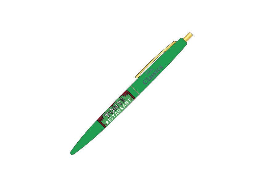 「トニーズレストラン」のロゴが目をひく『わんわん物語』のボールペン。
