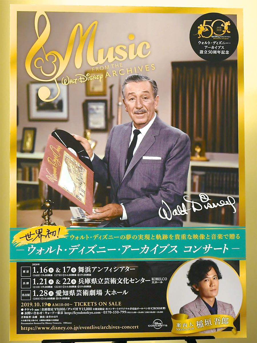 ウォルト・ディズニー・アーカイブスに収蔵された様々な資料と人々の心をつかんで離さないディズニー音楽のライブ演奏を通じてウォルト・ディズニーの描いた夢と人生を、稲垣吾郎さんがナビゲートする「世界初」のコンサートです。