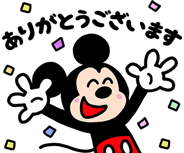 スタンプには「ミッキーマウス」が大きく手を広げ、感謝の気持ちを伝えるシーンや