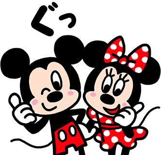 グループLINEなどでも使用しやすい、“グッド”のポーズをとる「ミッキーマウス」と「ミニーマウス」