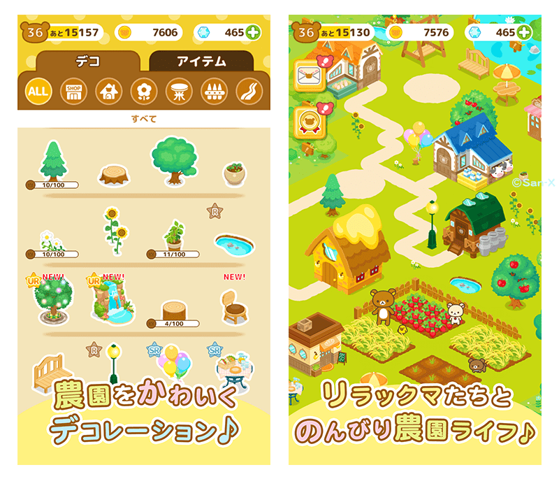 「リラックマ」たちと、ごゆるり農園生活が楽しめる、スマートフォン向けの農園ゲームです☆