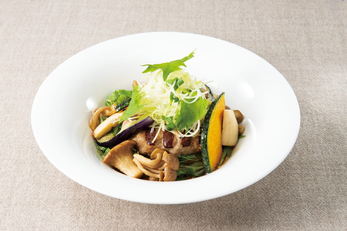 しっとり柔らかな豚しゃぶに、たっぷりのきのこ、かぼちゃなどを、優しい風味の和風あんで包みこんだ秋色ご膳。