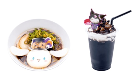 ほかにもインパクト抜群の黒いオムライス「ようこそ仮面舞踏会へ!ブラックオムライス」や、甘さ控えめの紫いものチョコがかぼちゃクリームと相性抜群な「プリンのマスカレードドナツ」のほか、NIGHT限定で販売される「クロミのブラックナイトココア」など計11品が登場します。