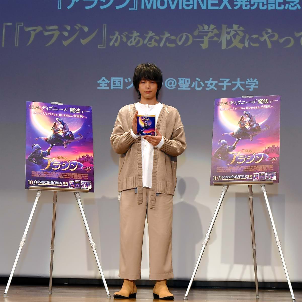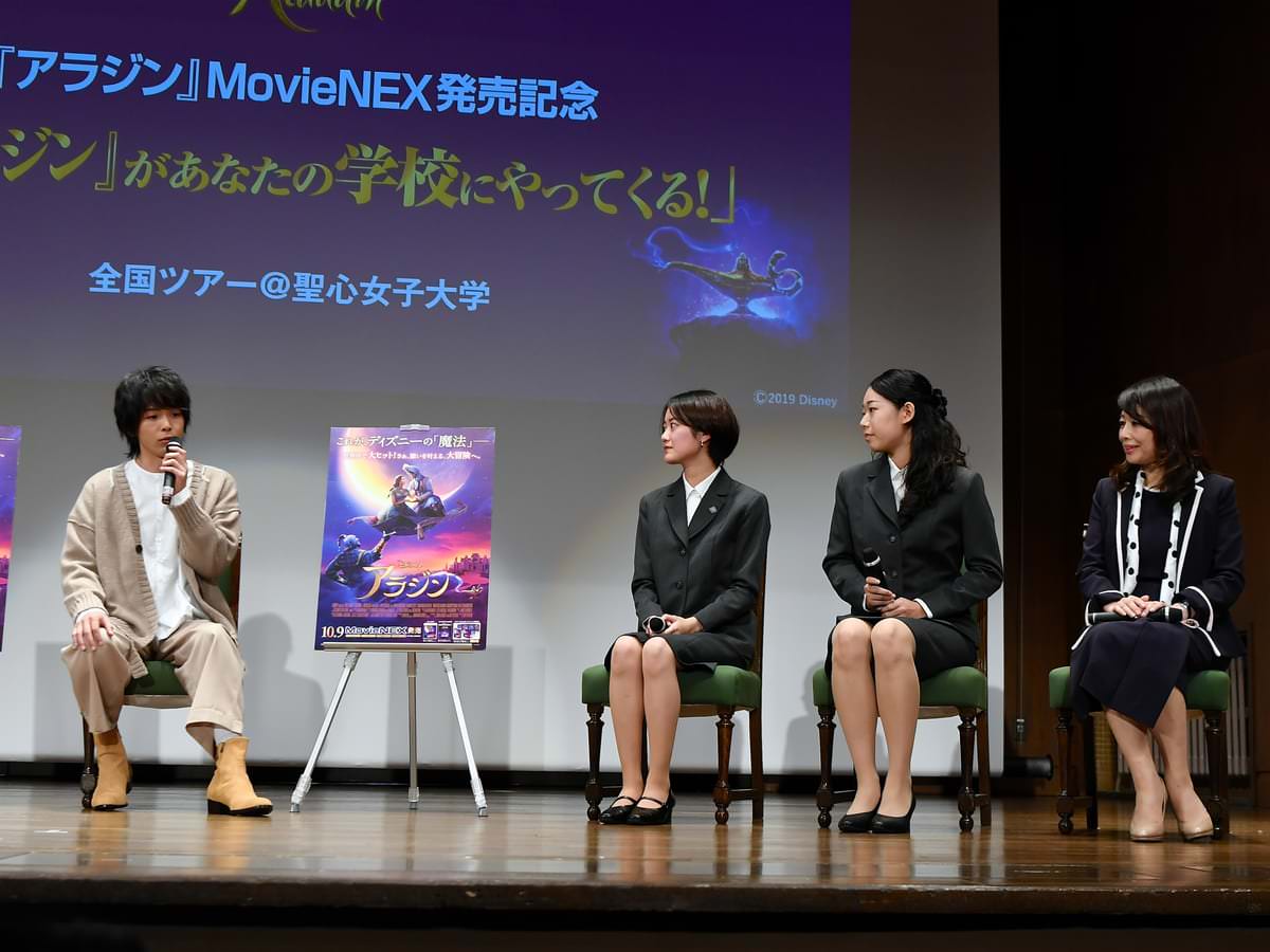 ツアー会場のひとつ、東京都・聖心女子大学にアラジン役の日本版ボイスキャストを演じた中村倫也さんが登場しました!