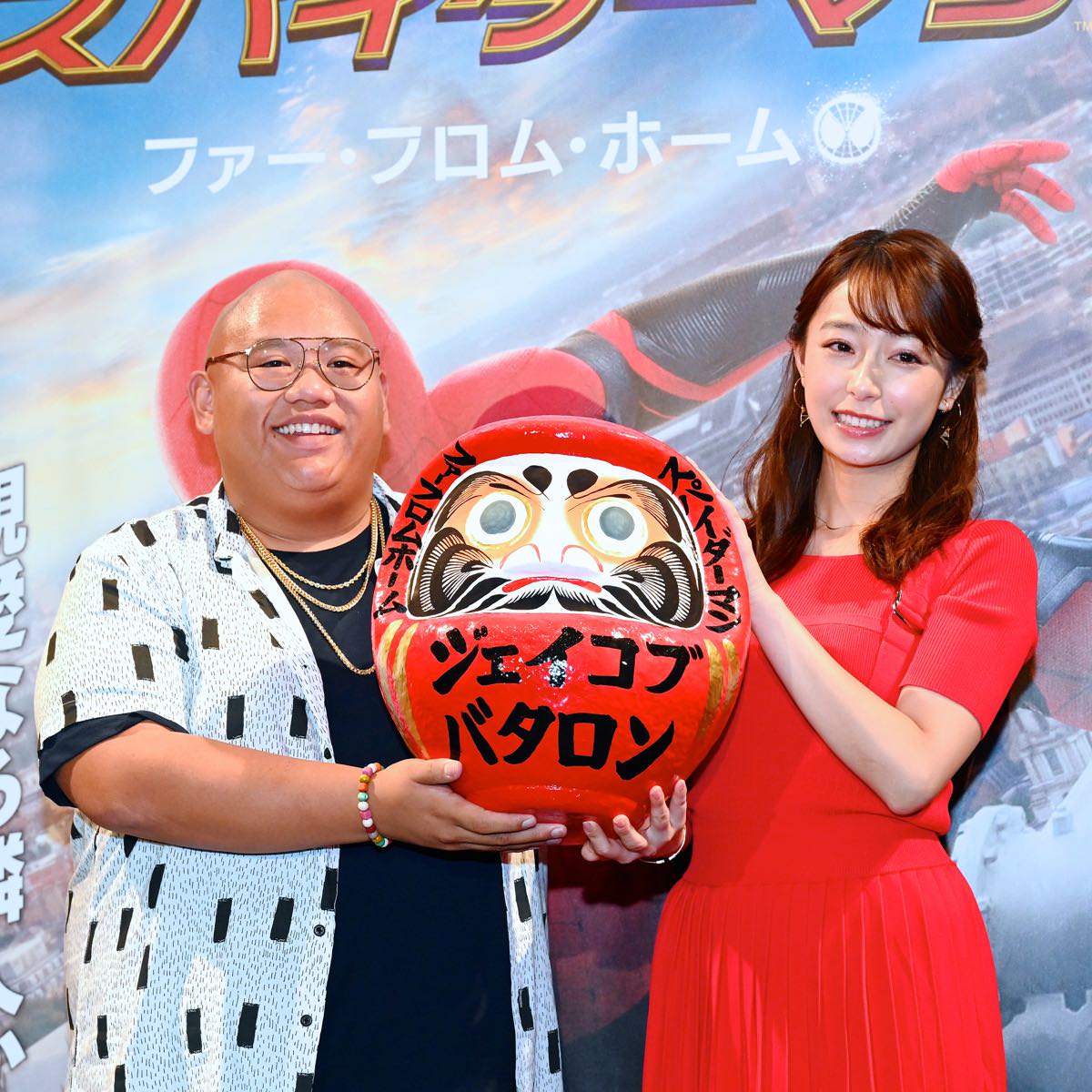 『スパイダーマン:ファー・フロム・ホーム』のブルーレイ&DVDのヒットを祈願し、「東京コミコン2019」広報部長の宇垣美里さんが登場し、だるまを贈呈。