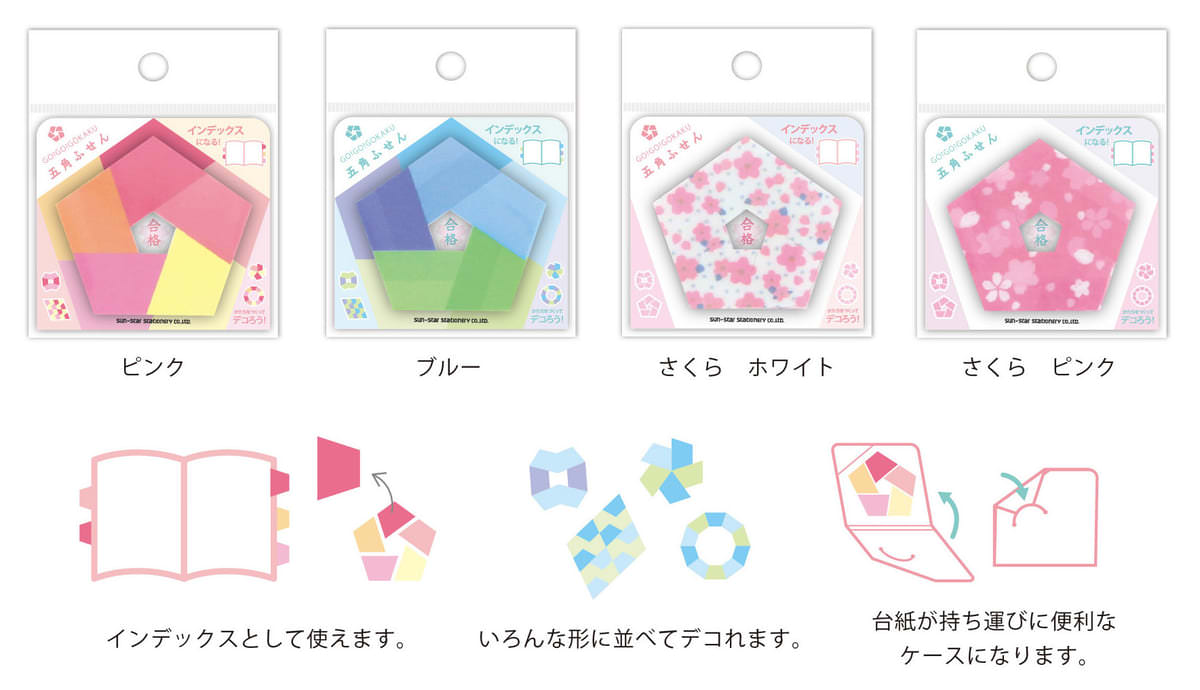 「合格」と「五角」をかけたフィルムタイプの付箋です。