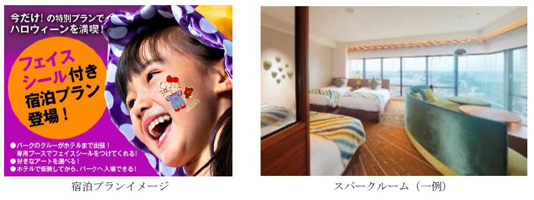 また、通常より1時間早い午後2時からチェックインが可能なため、事前に館内の専用ブースでフェイスシールのプチ仮装や、お部屋でハロウィーン衣装への着替えなどをすませてパークを楽しめるスペシャルプランです☆