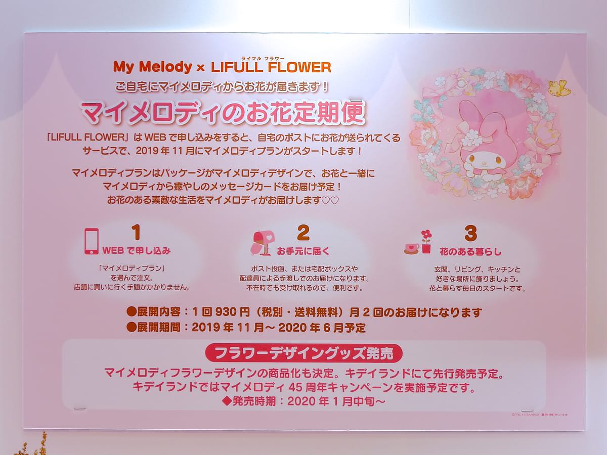 LIFULL FLOWERより2019年11月から配送が開始される「マイメロディお花の定期便」の紹介でした☆