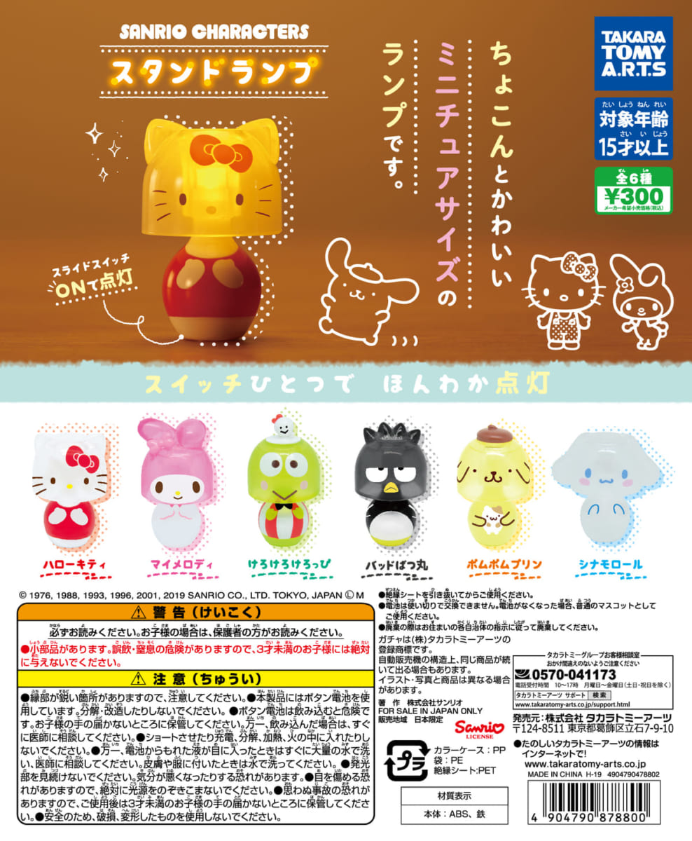 タカラトミーアーツのガチャに「SANRIO CHARACTERS スタンドランプ」が仲間入り。