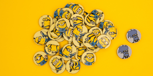 案内板カード5枚、チップシート2枚、スクリーン8枚が付属された「ミニオン」尽くしのボードゲームです☆