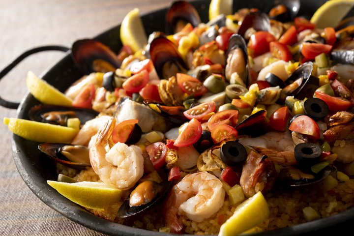 バルをイメージした「スペイン祭」では「アヒージョ」のほか、平日限定メニューとして「スパニッシュオムレツ」やスペインのカスティーリャ地方で親しまれているスープ「ソパ・デ・アホ」、土日祝限定メニューとして、シーフードがふんだんに盛り込まれた「パエリア」など、スペインを代表するバラエティー豊かな料理が登場。