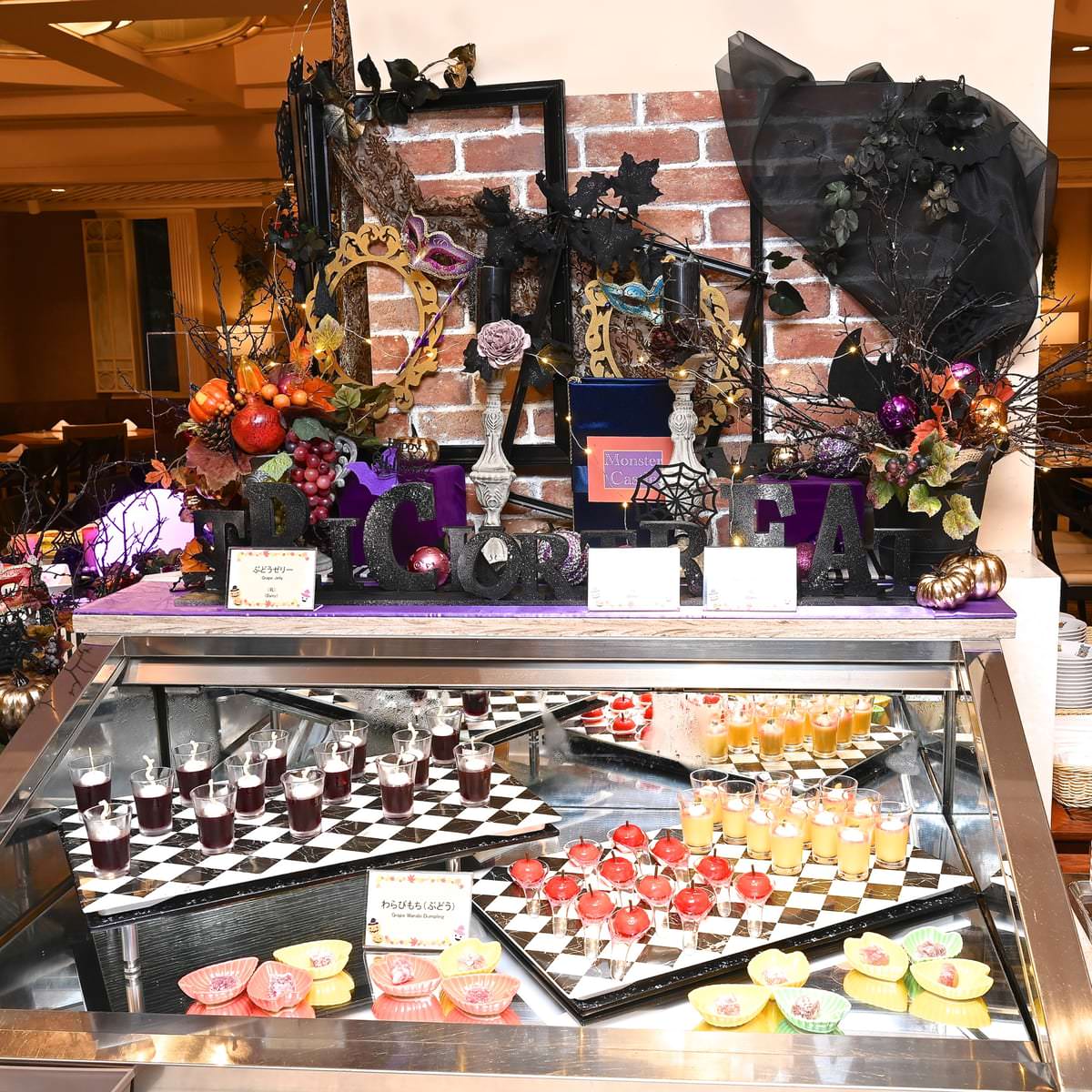 バラエティー豊かなビュッフェと、ライブ感満載の鉄板実演メニューやハロウィーンスイーツなどでゲストをお出迎え。