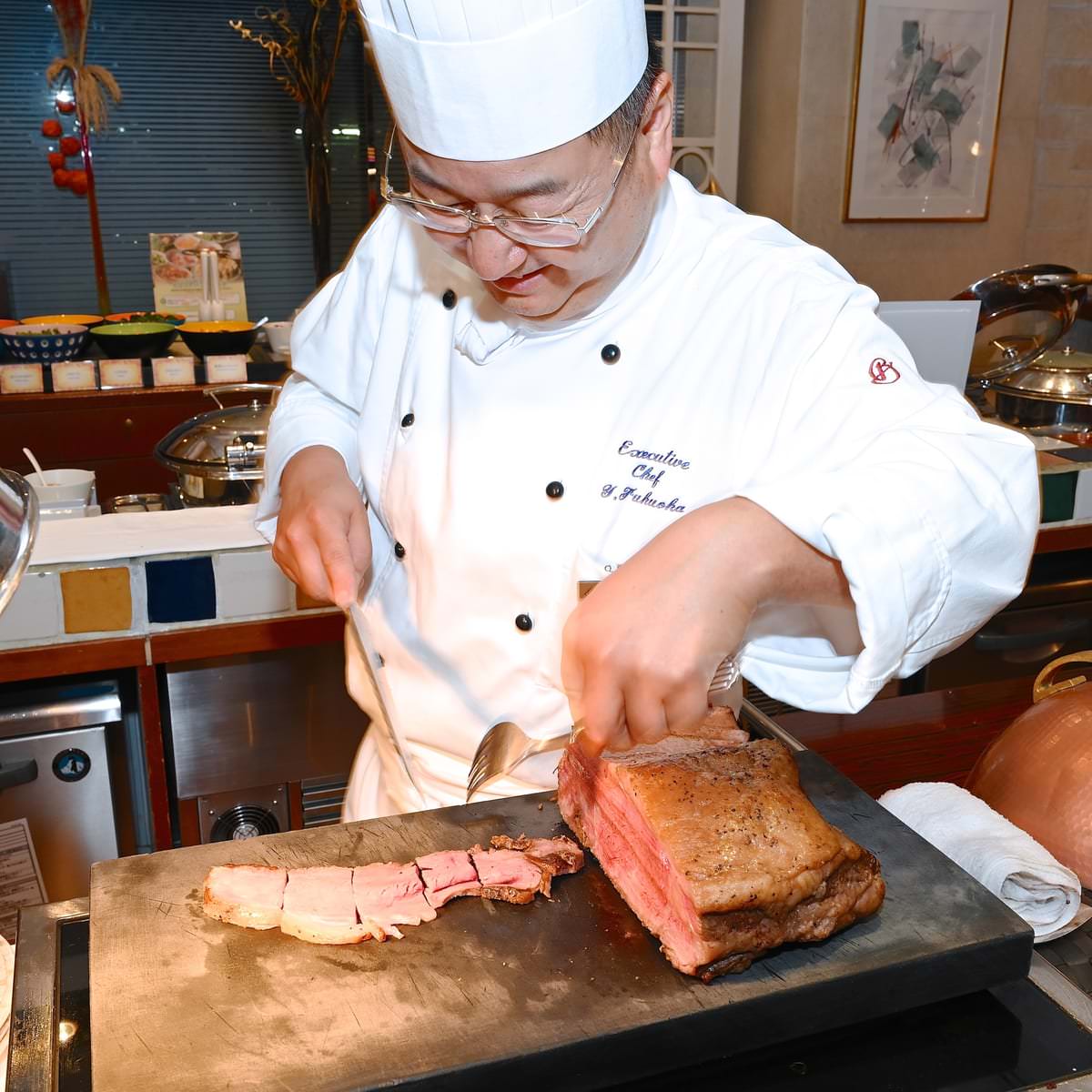 ホテルのレストランならではのライブ感あふれる実演メニュー。