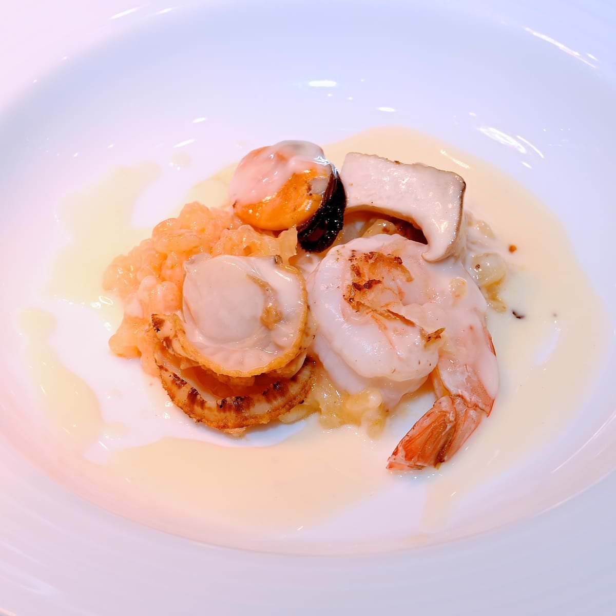 平日ディナー限定「イタリア産チーズのサフランリゾット 鉄板焼きシーフードを添えて」
