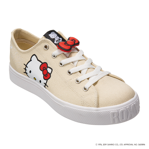 定番の白いキャンバススニーカーも、アッパーに『ハローキティ』があしらわれた大胆デザインで登場。