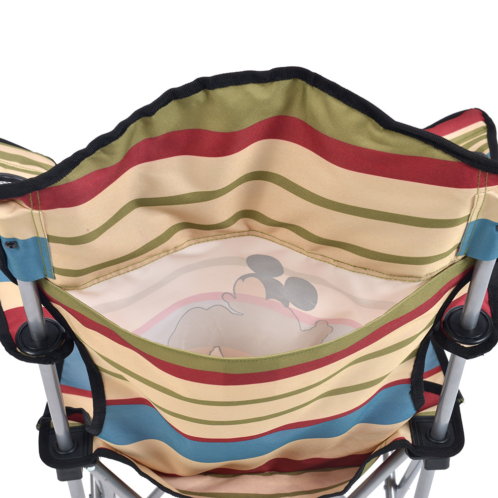 「ミッキーマウス」と「プルート」が中央にプリントされた、マルチストライプ柄リクライナーチェア。