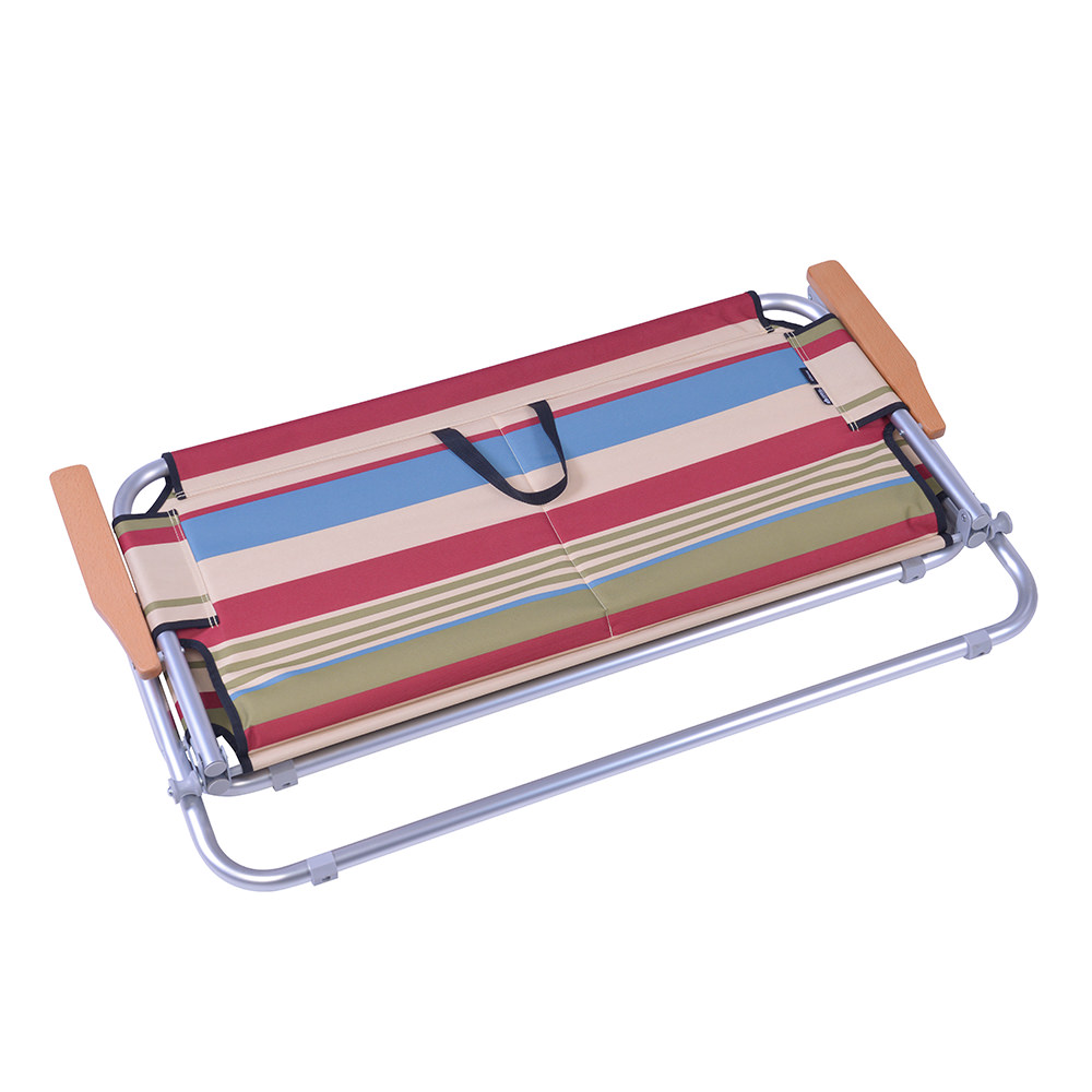 おしゃれなストライプデザインに、温かみのある木製の肘掛けがマッチ!