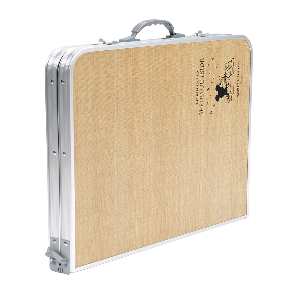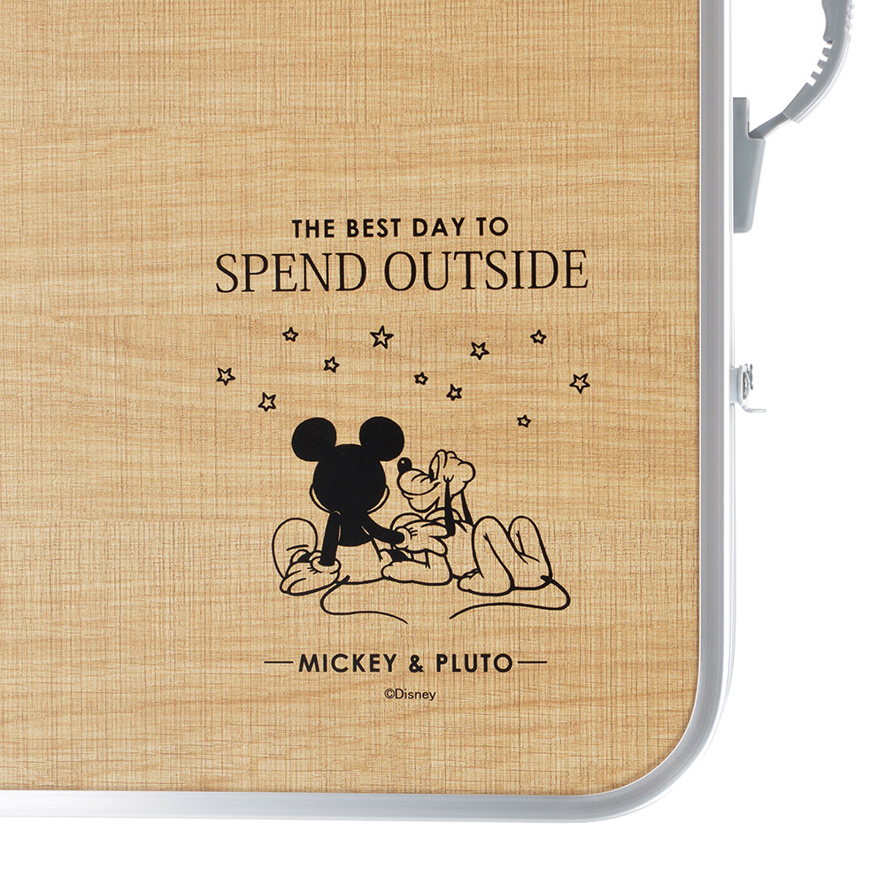 「ミッキーマウス」と「プルート」がワンポイントでプリントされたアウトドアテーブル。