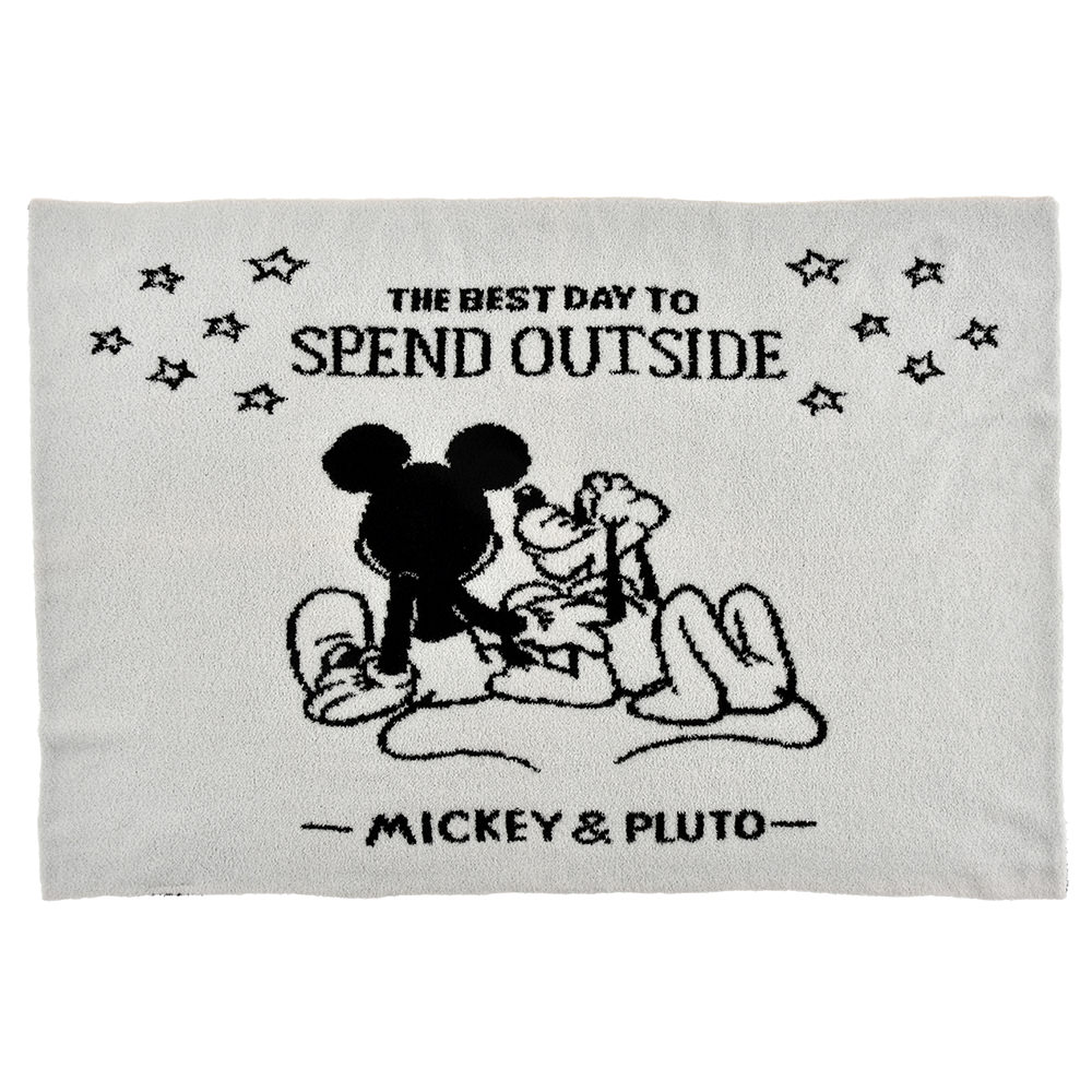 「ミッキーマウス」と「プルート」の後ろ姿が描かれた、スタイリッシュなモノトーンデザインのブランケット。