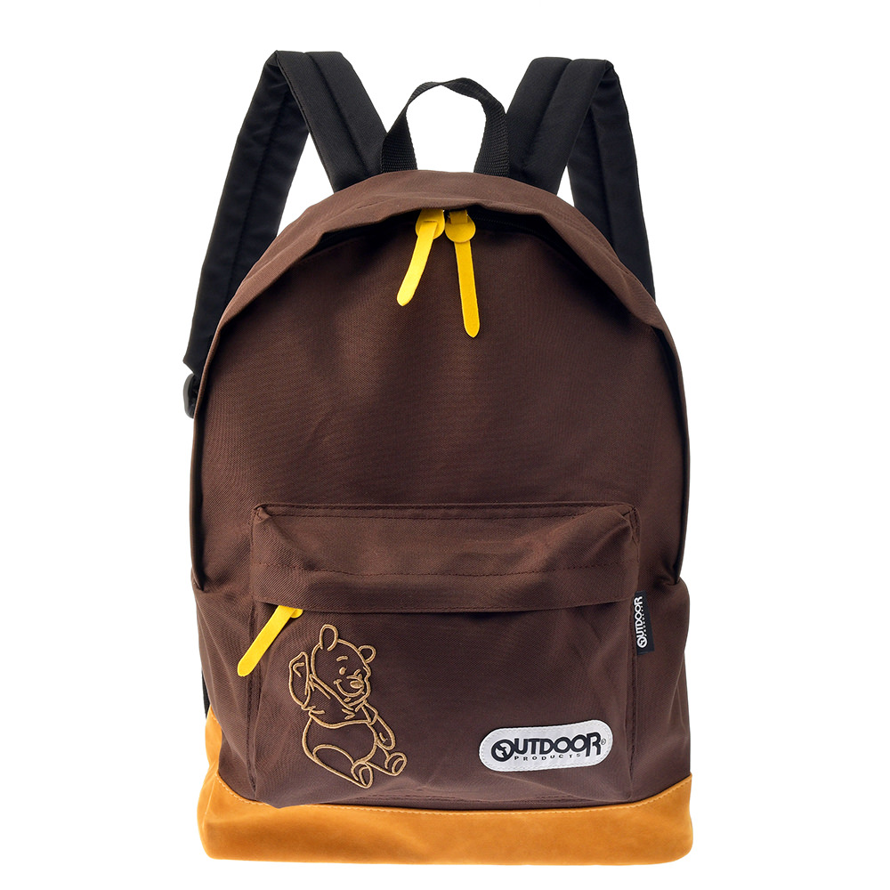フロントポケットに施された「プーさん」の立体刺しゅうと、ブランドネームが際立つバックパック。