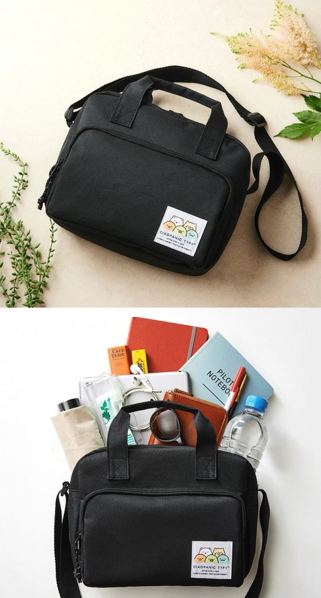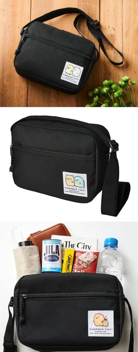 どんなコーデにも合わせやすいシンプルでおしゃれなデザインと、かわいい「すみっコ」と「CIAOPANIC TYPY」のロゴ入り織りタグがおしゃれなバッグです!