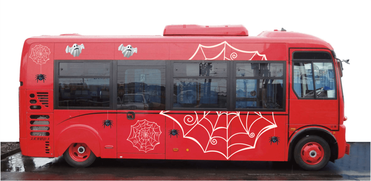ツアー形式で運行される「バスのバーティー」のハロウィン仕様バス。