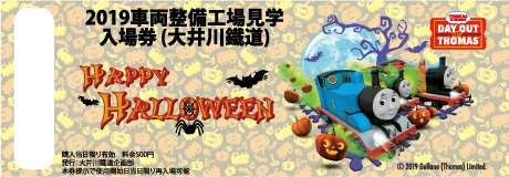 千頭 トーマスフェア会場、新金谷 車両整備工場見学の入場券もハロウィン期間限定バージョンに!