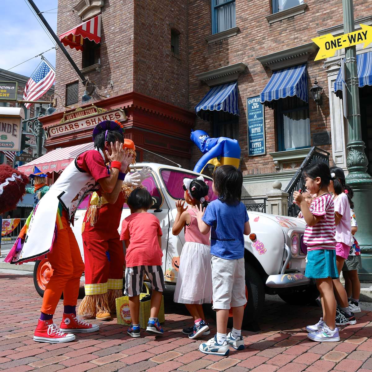 パークの愉快なエンターテイナーと一緒にいたずらを仕掛けたり、逆に仕掛けられたり、大はしゃぎして楽しめる「イタズラ・ストリート」
