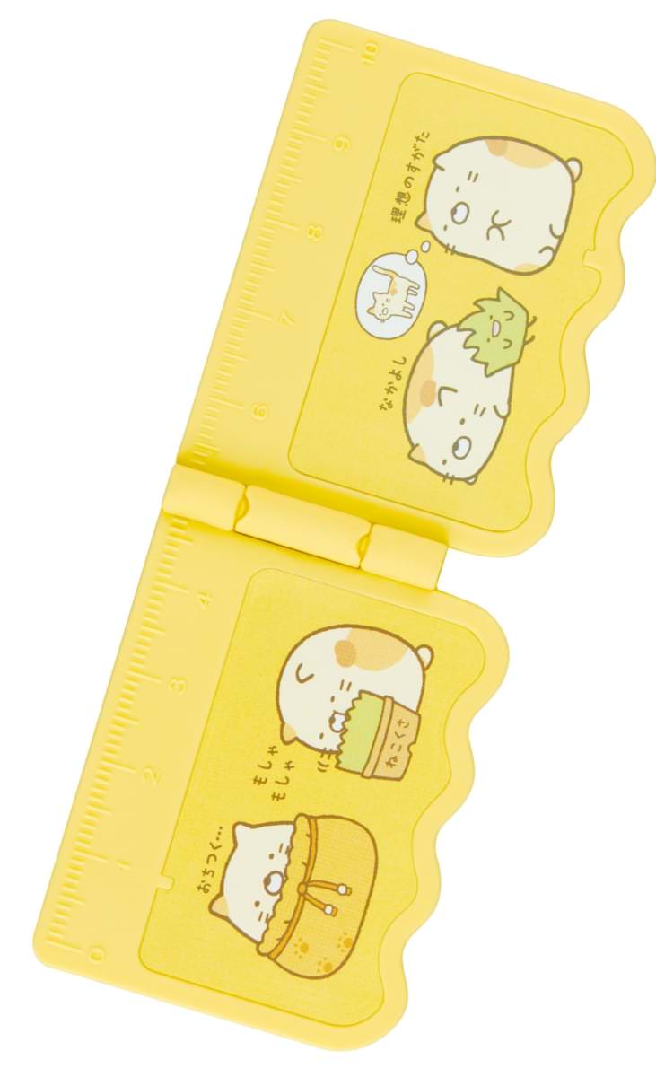 「ねこ」と「ざっそう」がハートフルに描かれた、折り畳み式のじょうぎが入っています。