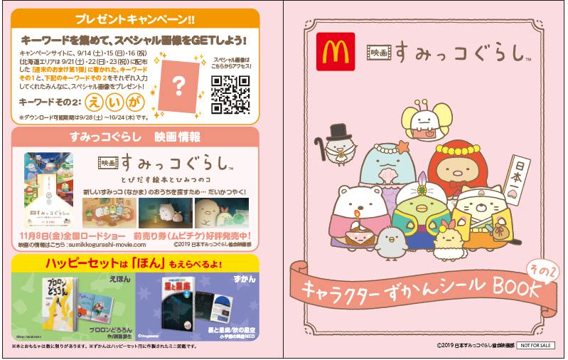 9月14日(土)・15日(日)・16日(月・祝)の3日間は、ハッピーセット「すみっコぐらし」を1セット購入することで、専用の台紙と