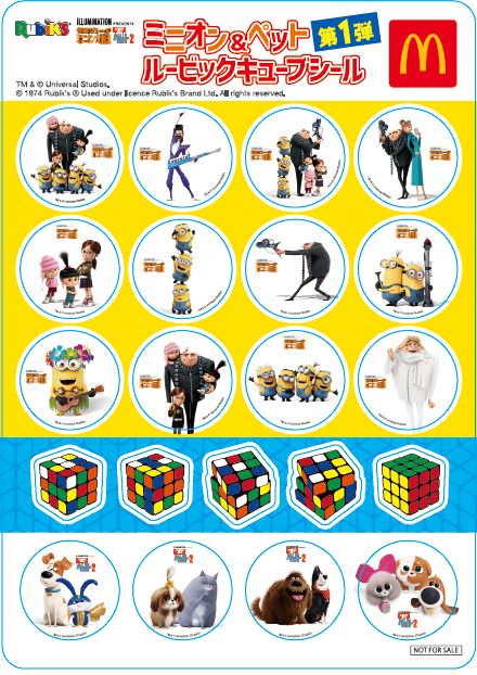 9月14日(土)・15日(日)・16日(月・祝)の3日間はハッピーセット「ミニオン&ペット ルービックキューブ」を1セット購入につき「ミニオン&ペット ルービックキューブシール 第1弾」が。