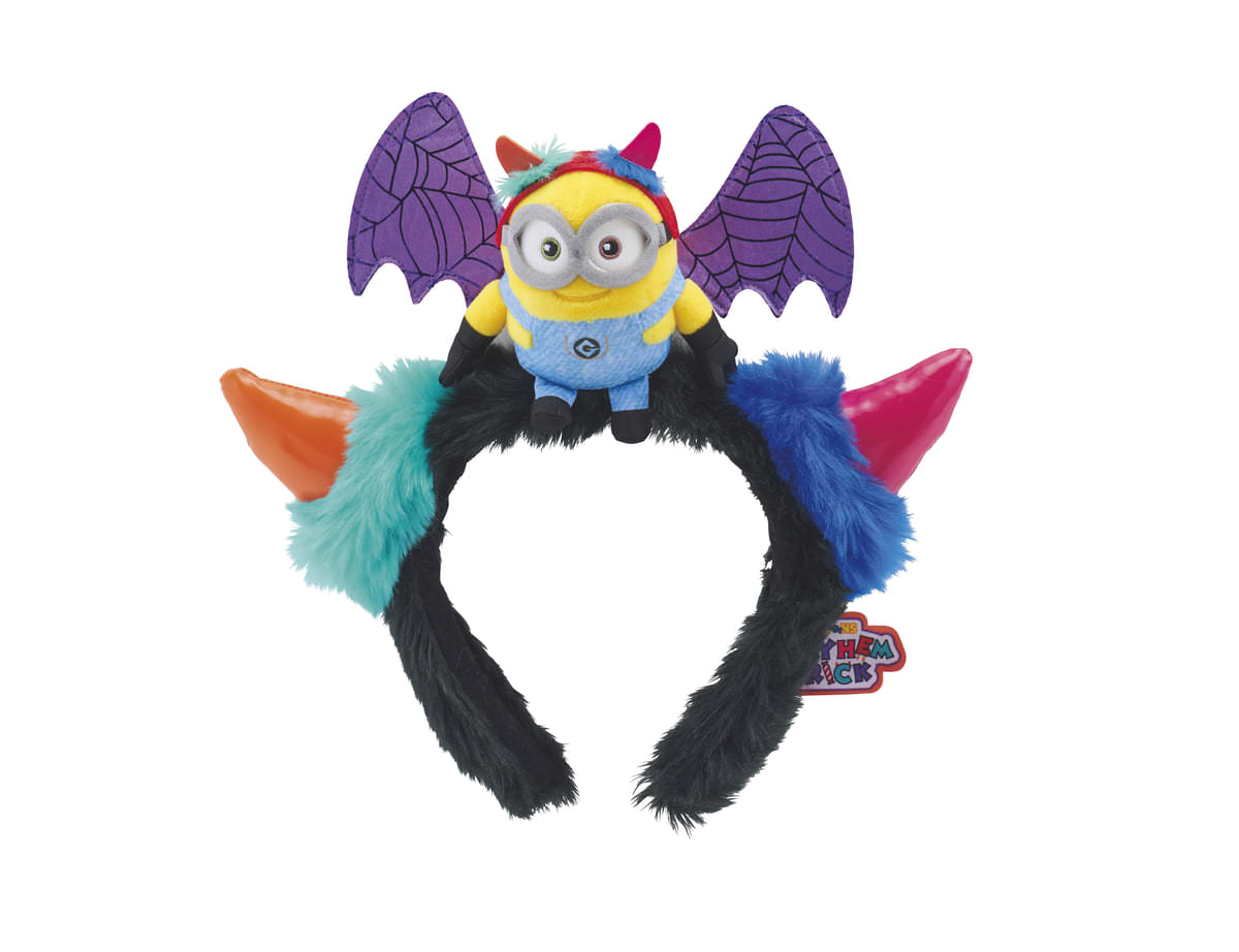 コウモリに扮した「ボブ」とカラフルなファーの角が付いたカチューシャ。