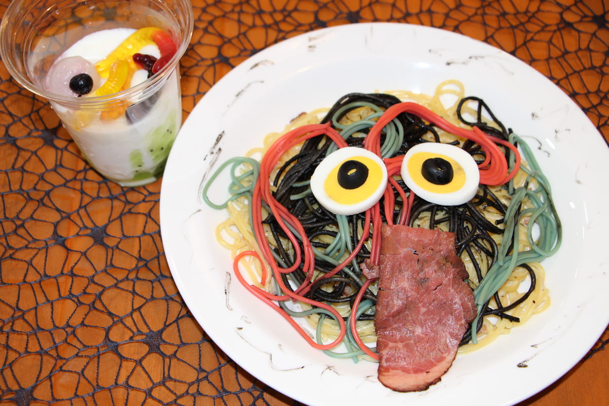 園内の各レストランでは、ハロウィンにちなんだリアルな見た目のSNS映え間違いなしの仰天メニューが登場します。