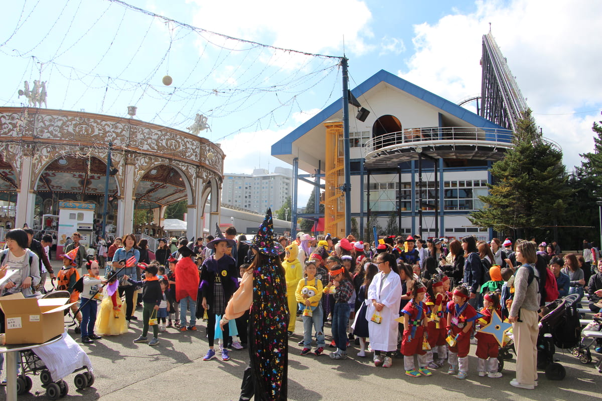 子どもたちが仮装をして、お菓子を配りながら園内をパレードする、富士急ハイランド秋恒例のイベントです。
