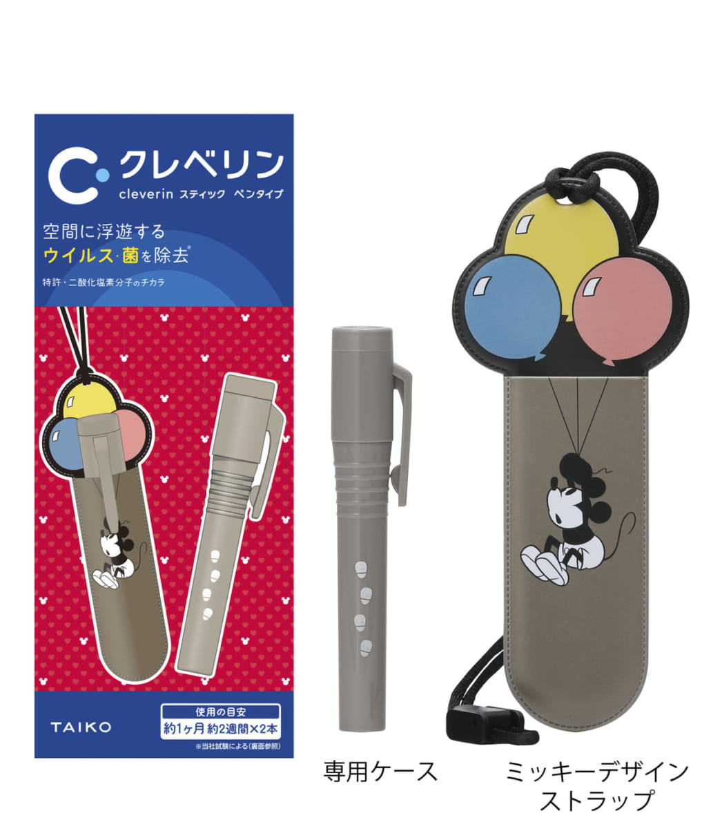 『クレベリン スティック ペンタイプ』シリーズの「ミッキーデザインストラップ」と「プーさんデザインストラップ」は「ミッキーマウス」や「プーさん」のイラストが描かれたカバーに専用の『クレベリン スティック ペンタイプ』を入れ、首から下げて使用します。