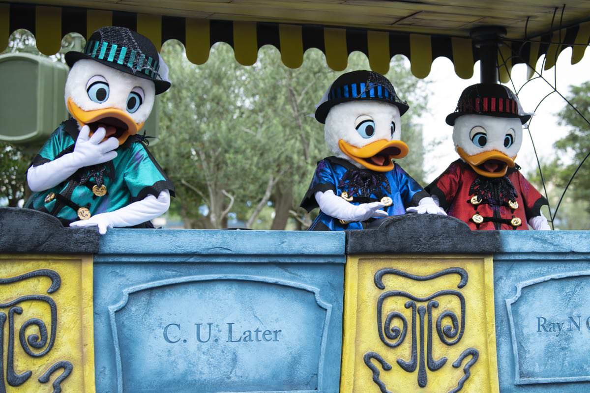 ゲストがゴーストの仲間入りをしたお祝いをしながら、フロートが再び動きだし、トゥーンタウンへと向かいます。