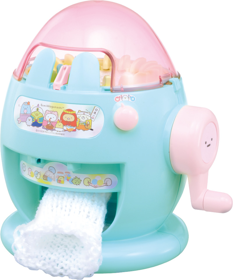 ハンドルをくるくる回すだけで簡単に輪編みと平編みができる編み機「あむあむたまごポンポン」の『映画 すみっコぐらし』バージョン!