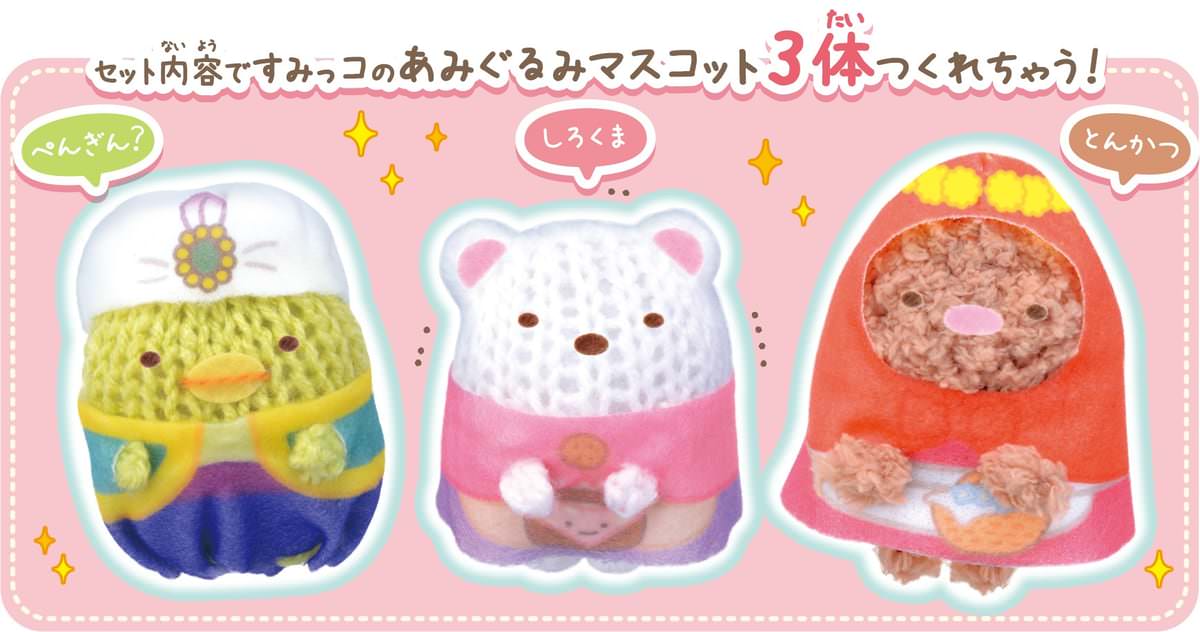 同梱されている毛糸で映画に登場するキャラクター「ぺんぎん?」「しろくま」「とんかつ」の3体が作成可能。