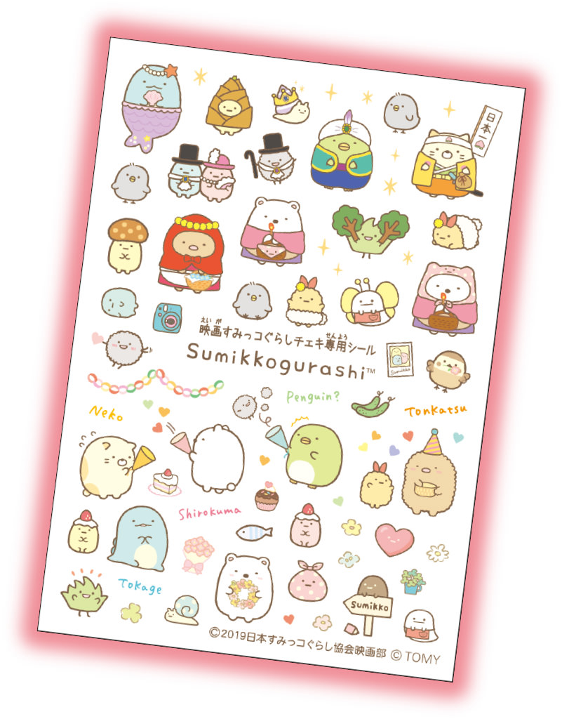 「映画すみっコぐらし チェキ」には、フィルム10枚と『映画 すみっコぐらし』デザインのデコシールが付属。