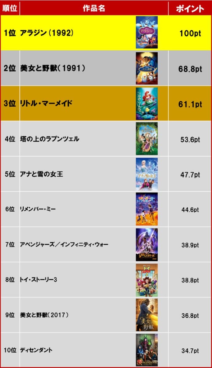 3位には、2019年に公開30周年となる『リトル・マーメイド』がランクイン。