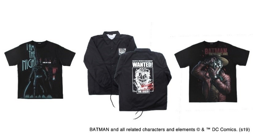 「バットマン」や「ジョーカー」のアートが落とし込まれたTシャツやコーチジャケットがラインナップされます。