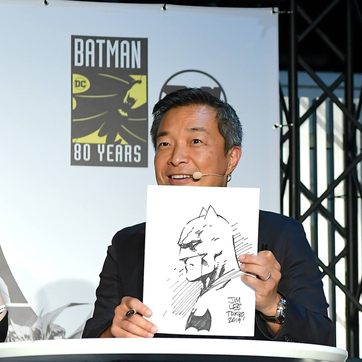ジム・リーさんが「バットマン」のキャラクターをその場で描くライブドローイングも実施。