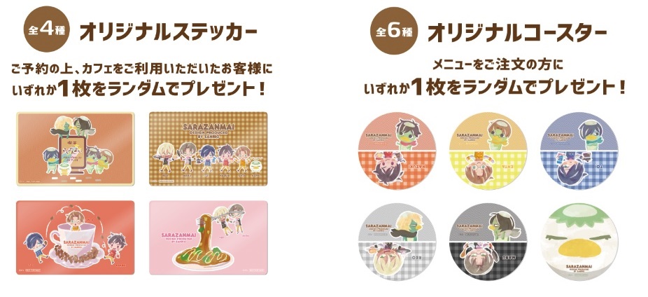 カフェでメニューを注文された方には、全6柄が用意された「オリジナルコースター」を1品につき1つ、ランダムでプレゼントされます☆