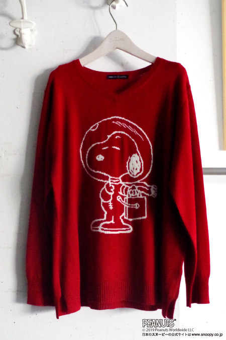 宇宙飛行士を装った「スヌーピー」がジャガード織りで表現されたニットプルオーバー。
