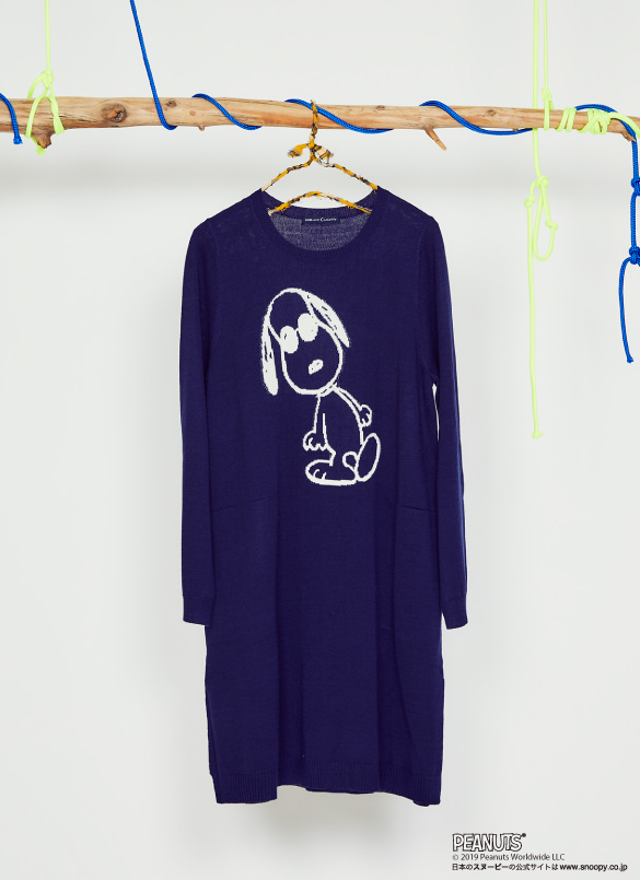 サングラスをかけたファニーな雰囲気の「スヌーピー」のニットプワンピース。