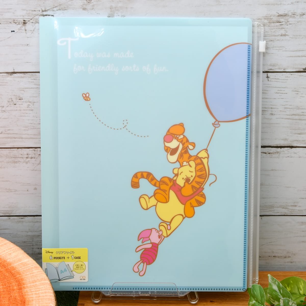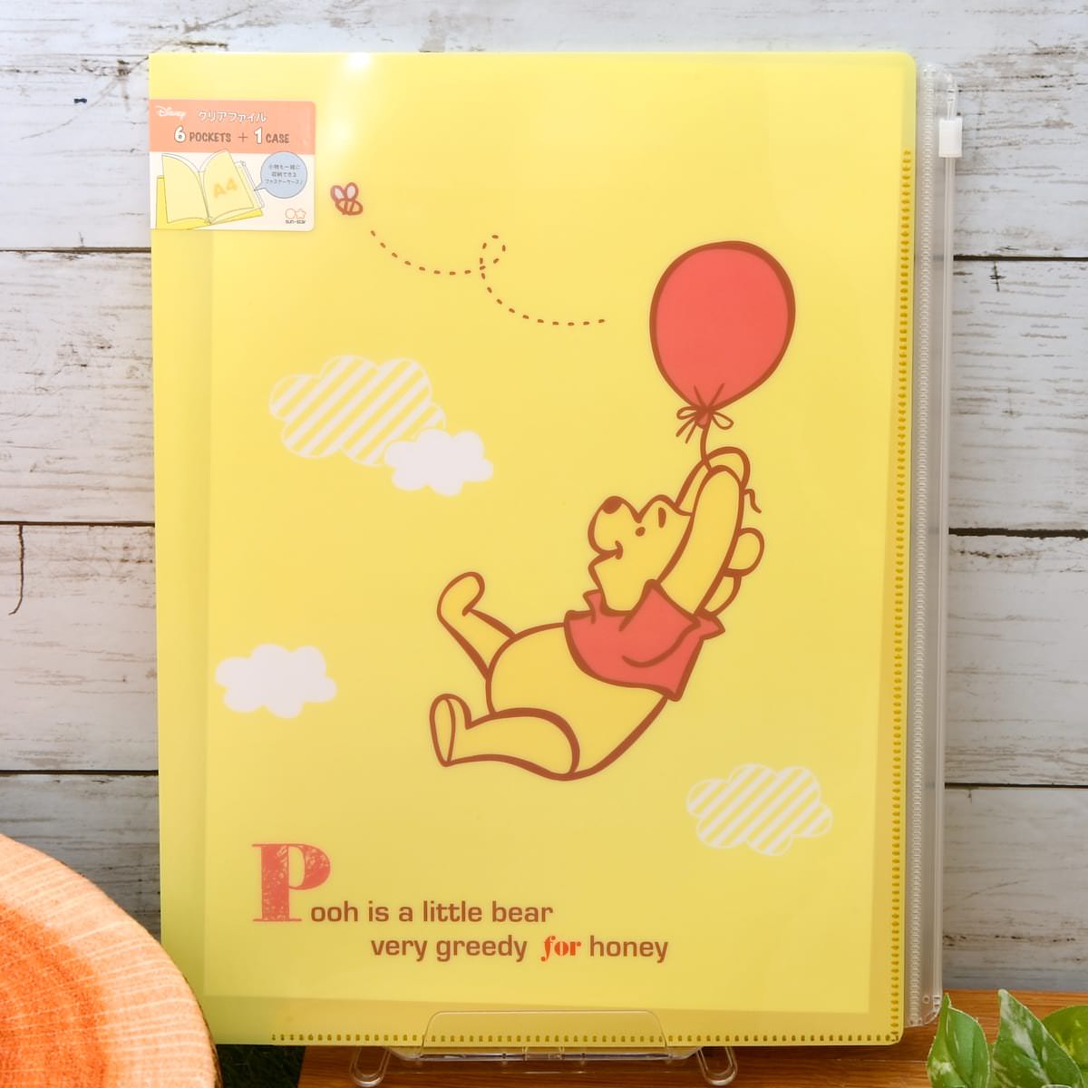 小物も一緒に収納できるファスナーケース付きのA4サイズのクリアファイル。