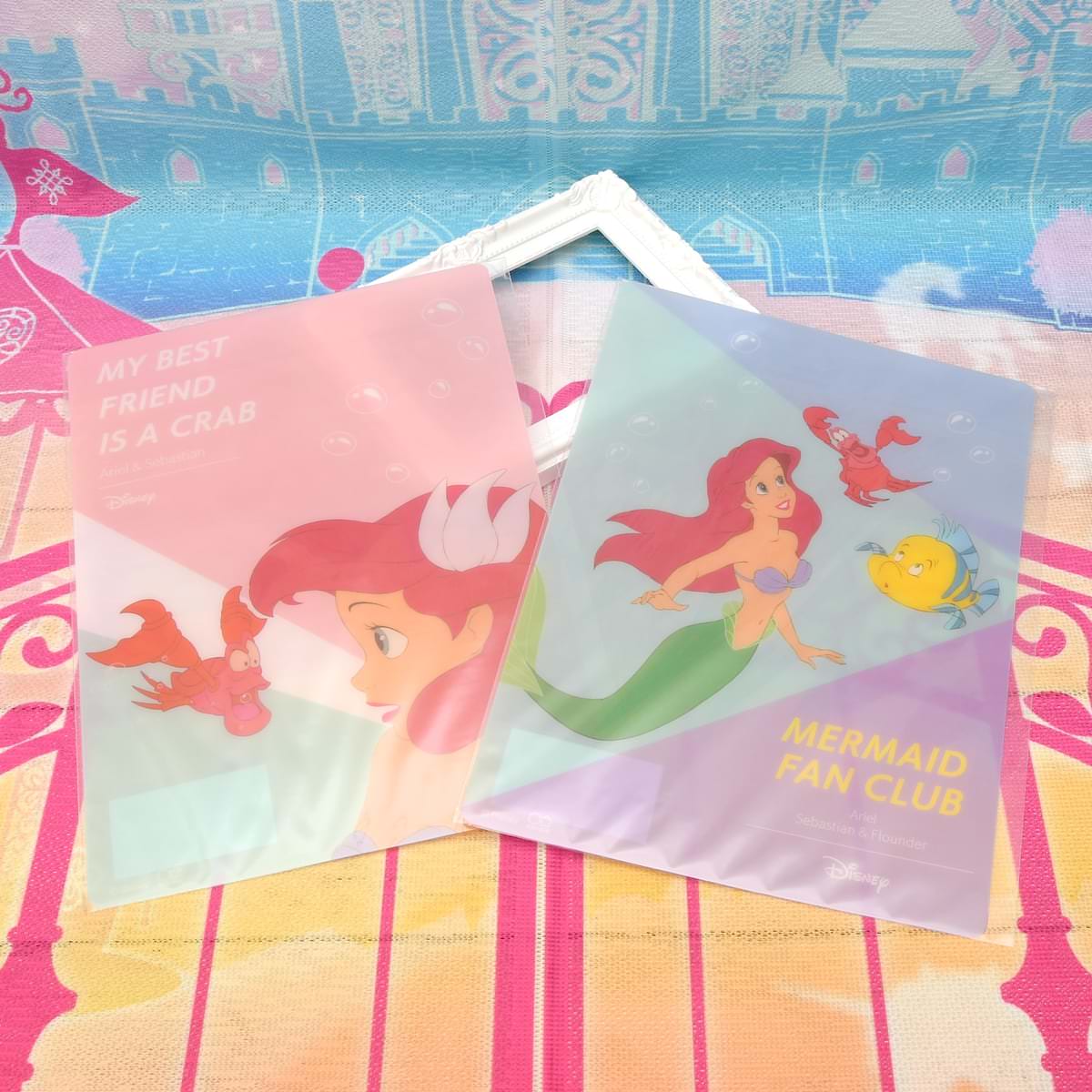 ディズニープリンセスの「アリエル」、おともだちの「フランダー」、お目付け役の「セバスチャン」が描かれています☆